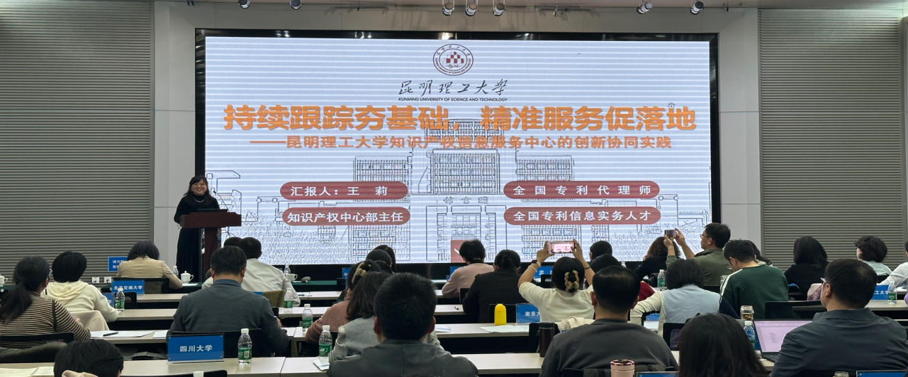 在23日下午的全国10家高校中心代表经验分享环节,我校图书馆王莉老师以“持续跟踪夯基础、精准服务促落地——昆明理工大学知识产权信息服务中心的创新协同实践”为题汇报,聚焦资源有限高校知识产权服务痛点,结合我校入选的2024年国家知识产权信息服务优秀案例,系统介绍我校构建“轻量化、高粘性、深嵌入”协同服务机制的实践路径,明确提出专利信息服务不应单纯追求“全链条覆盖”,而需精准匹配科研团队技术攻关“痛点”。通过服务角色从“信息供给方”到“技术攻关伙伴”的转型,成功推动实验室技术创新从“单点突破”升级为“系统创新”,真正实现专利信息对高质量创新的深度赋能。 我校的创新实践因针对性强、可复制性高,获得国家知识产权局领导及全国同仁的高度认可。该实践有效缩短创新链上专利成果与产业链应用转化的融合周期,为同类高校知识产权服务转型提供了极具借鉴价值的“昆工方案”。